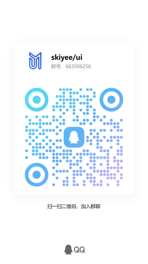 扫描以下二维码或者通过 点击该链接加入群聊【skiyee/ui】